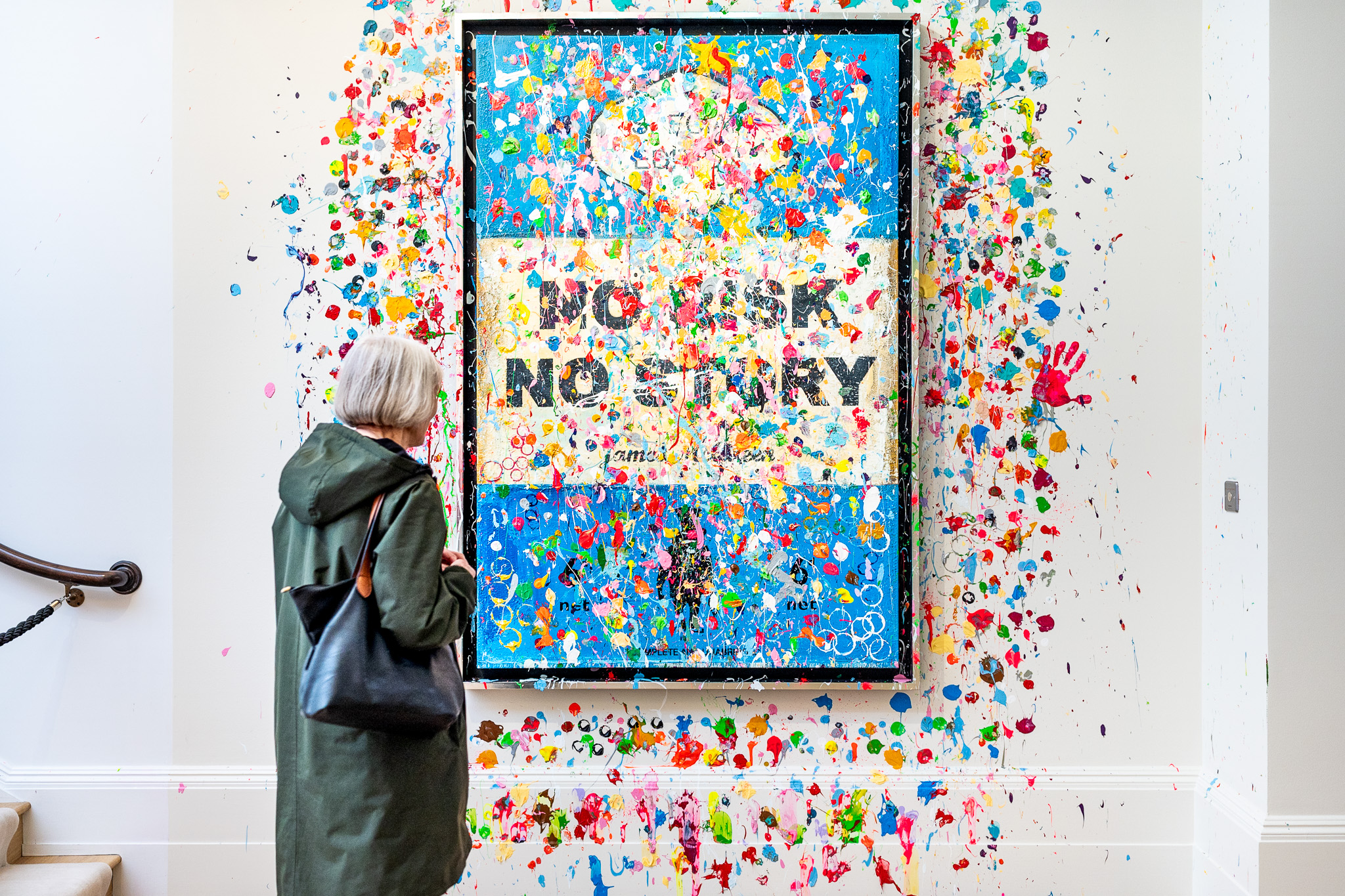 Mum at the art exhibition we went to see. This one – ‘No risk no story’ – was my favourite!