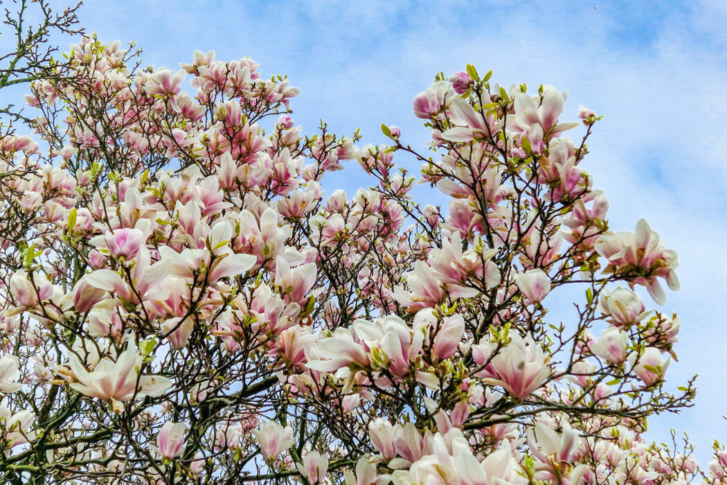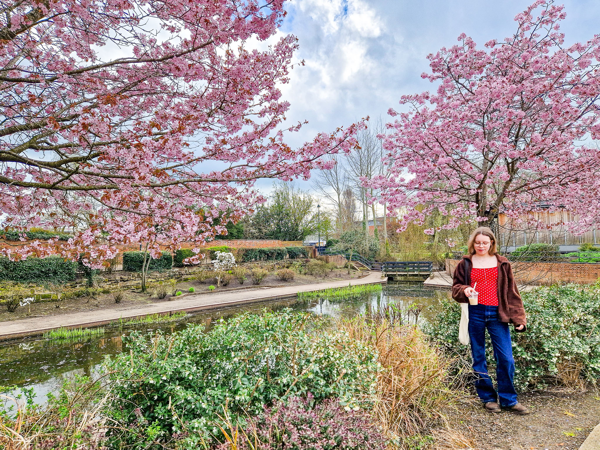 Hanging out in the park with coffee and blossom