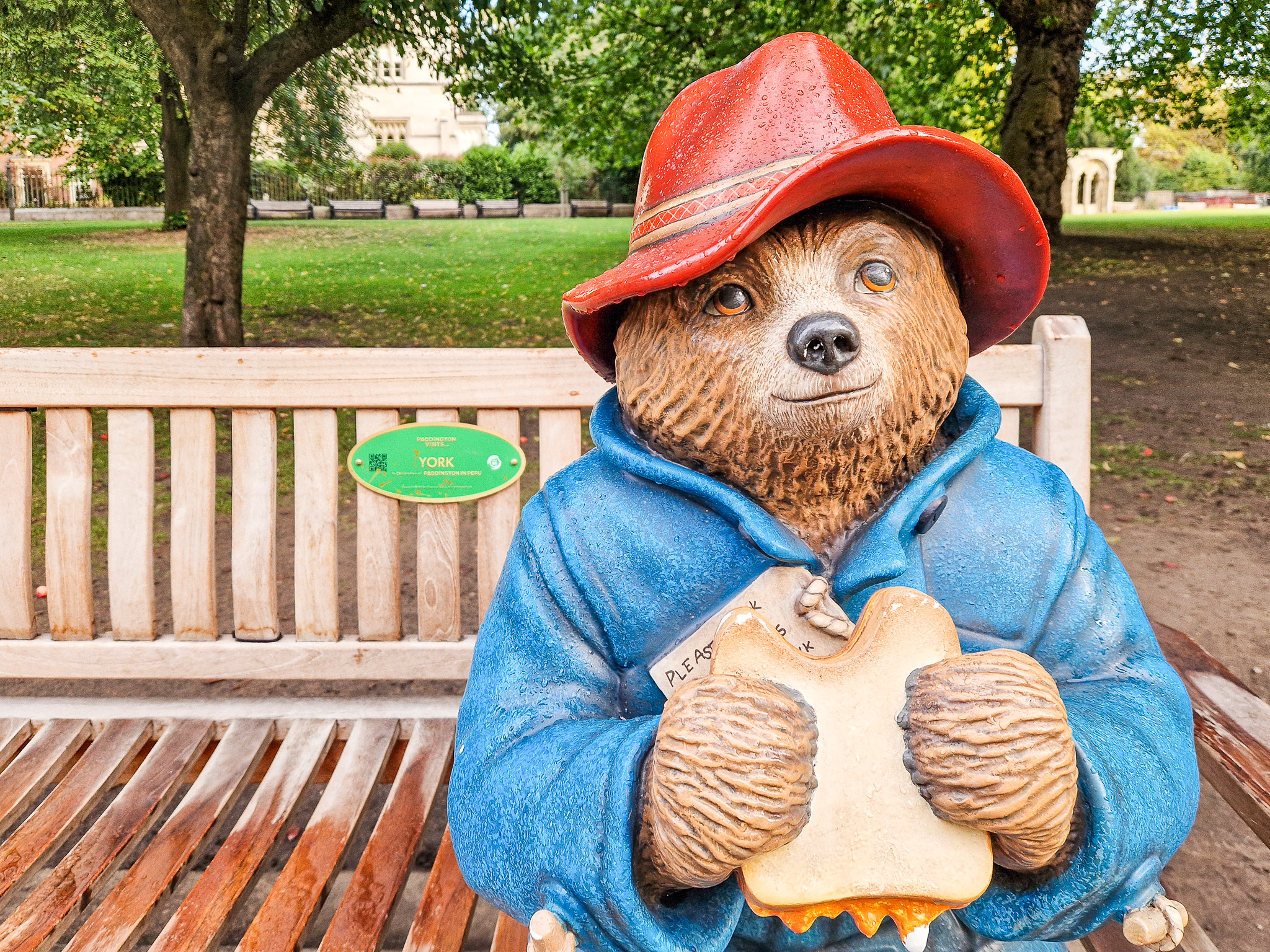 We found Paddington Bear on a bench!